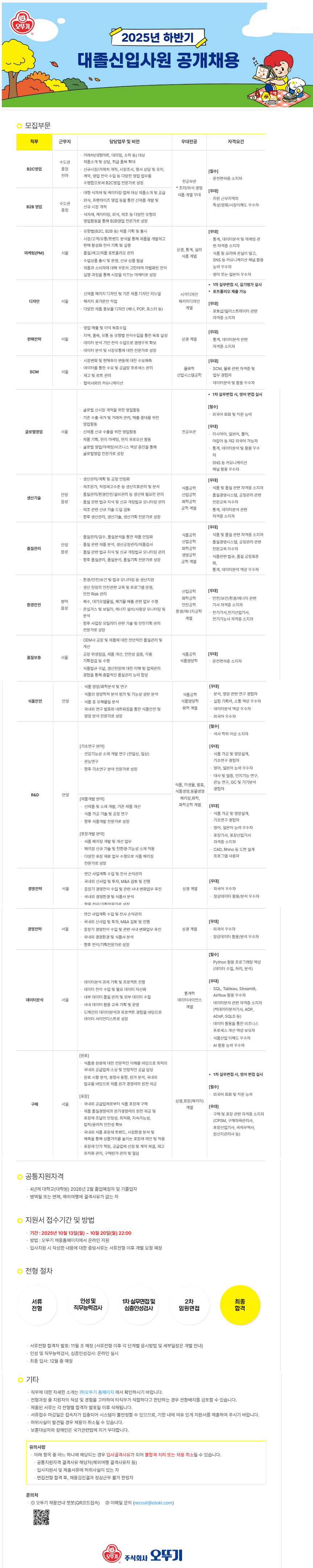 [오뚜기] 2025년 하반기 대졸신입사원 공개 채용